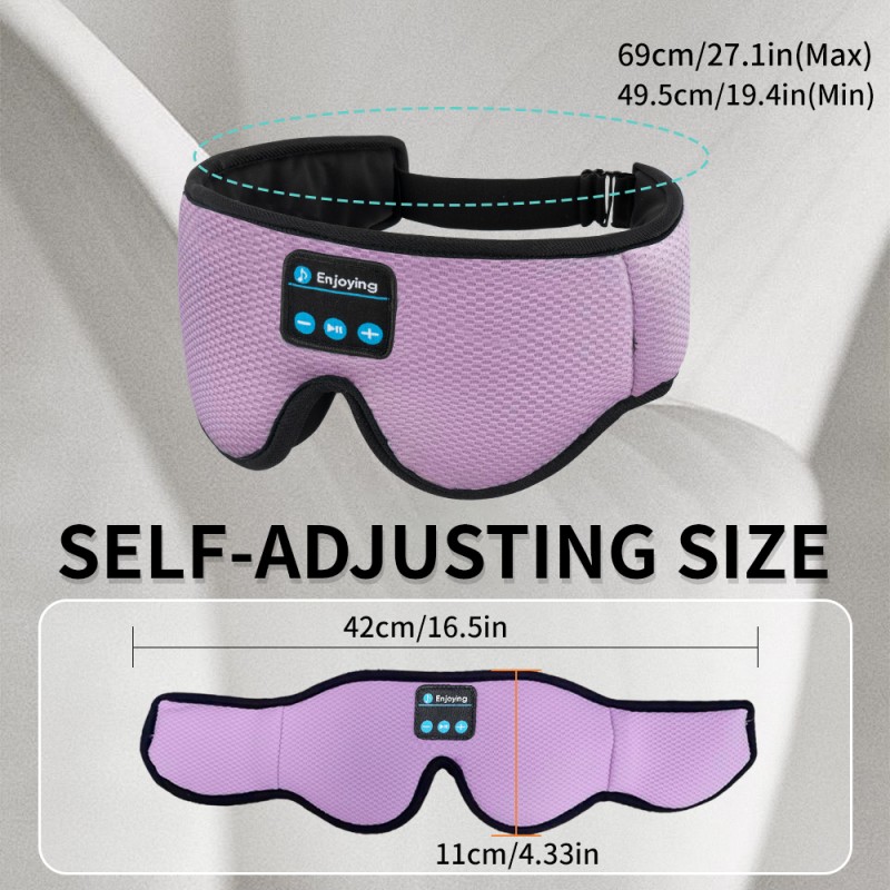 Denna 3D Bluetooth Sleep Eye Mask Sleep Headphones Purple är designad med material som andas och en bekväm känsla, andningsbar minnessvamp med långsam återhämtning och smidigt tyg som låter dig släppa din ansiktsstress och hjälpa dig att sova snabbt. Bluetooth-kontroll på mitten och passar perfekt för sidosövare.