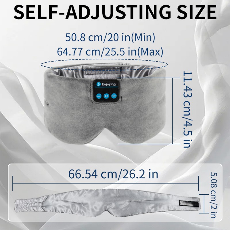 Denna grå mask för sömnhörlurar i silkes bluetooth är ergonomiskt utformad för att passa kurvorna i ditt ansikte. Det justerbara magiska pannbandet passar de flesta storlekar på huvudets omkrets. Detta mjuka sömnmask-headset är inte bara en produkt utan också ett tillbehör för livet.